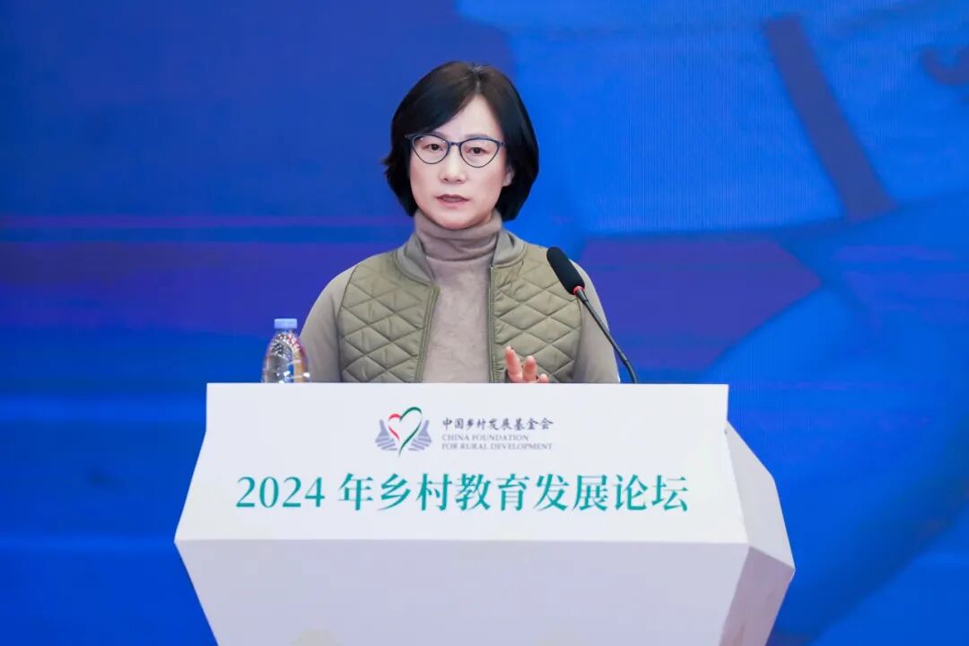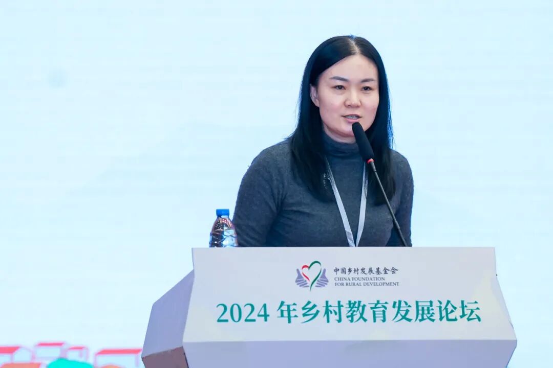 中国乡村发展基金会助理秘书长韦丹丹介绍了基金会在推动县域教育发展方面的思考与实践。她表示,过去20年间,基金会紧跟国家政策方向,精准对接乡村需求,整合各方资源,实施了一系列教育项目,有力地推动了乡村教育从普及到优质的转变。以“加油未来”项目为例,该项目通过创新课程体系、赋能教师成长、优化校园发展模式等措施,在全国8个省份的23个县850所学校实施,促进了城乡教育的一体化发展,探索出一条社会力量与政府协同发展的新路径。