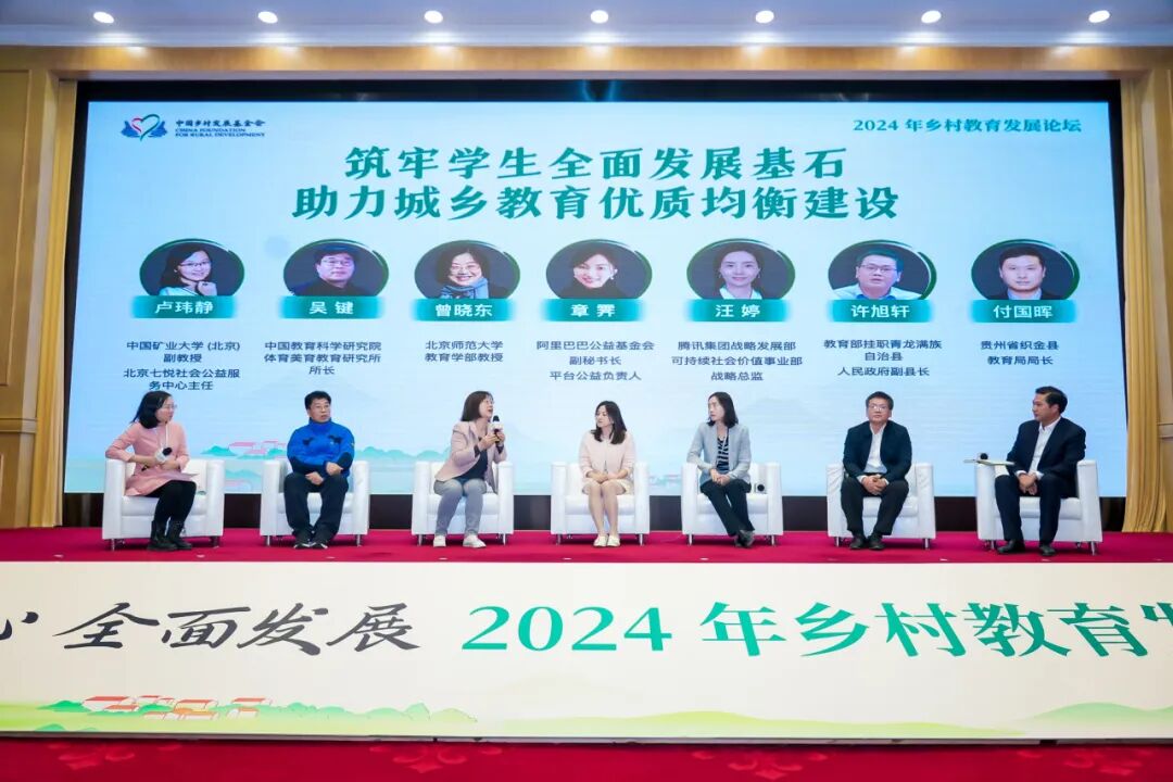 为了深入探讨新形势下的乡村教育高质量均衡发展路径,论坛设计了“筑牢学生身心健康、助力城乡义务教育均衡建设”圆桌讨论,邀请了中国教育科学研究院体育美育教育研究所所长吴键、北京师范大学教育学部教授曾晓东、阿里巴巴平台公益负责人章霁、腾讯集团战略发展部可持续社会价值事业部战略总监汪婷及项目县代表教育部挂职青龙满族自治县人民政府副县长许旭轩、织金县教育局局长付国晖,就学生全面发展的挑战及需求、社会力量与政府的有效协同等内容展开讨论。