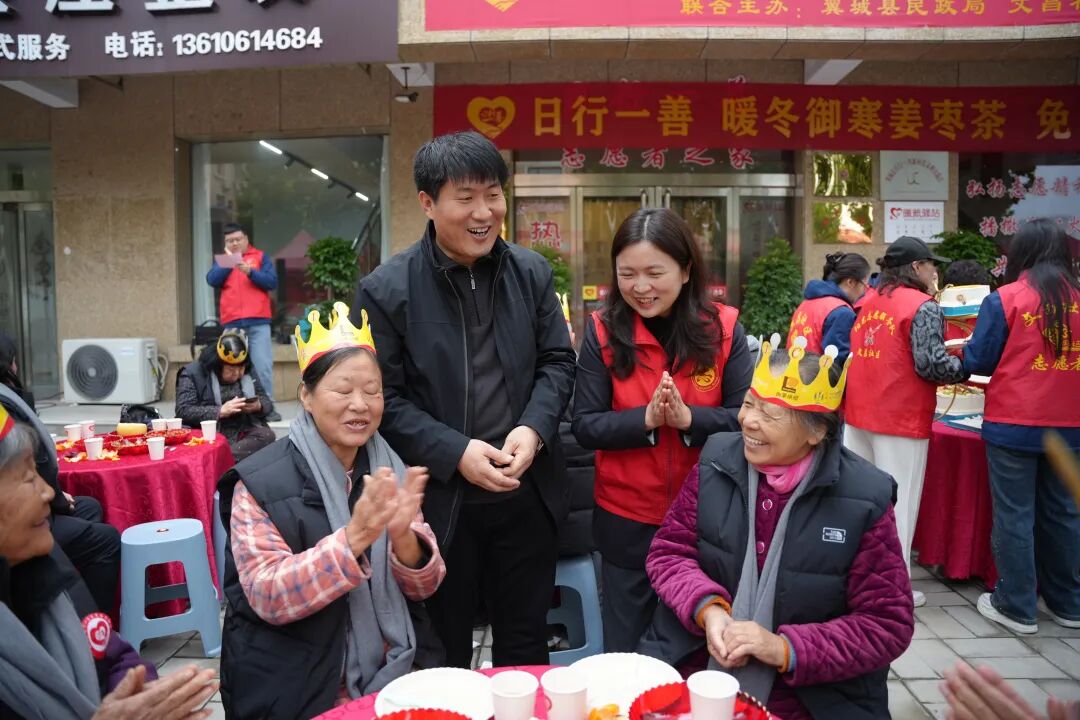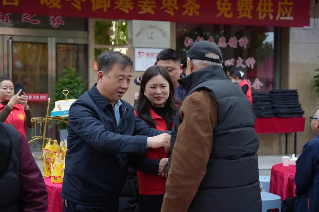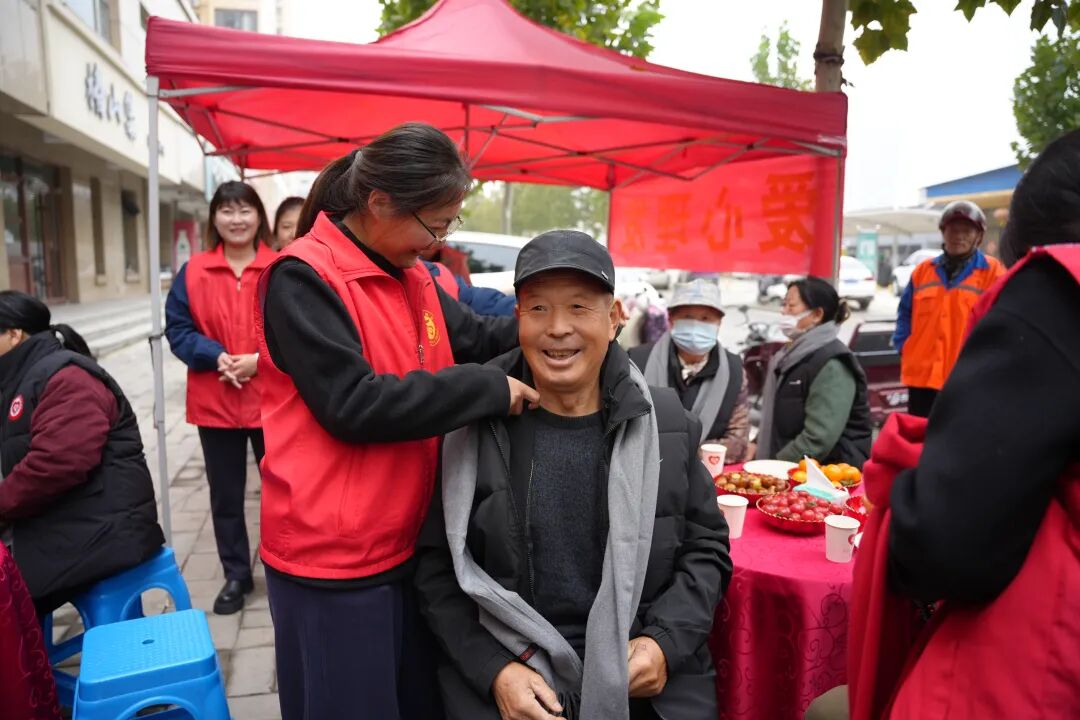志愿者们给老们穿上棉马甲,戴上羊绒围巾,将温暖与关怀送到老人心坎上,营造出浓厚的节日氛围。