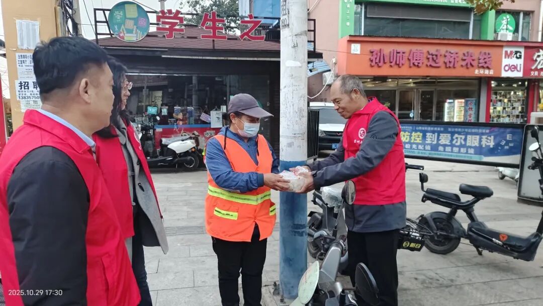 活动中,志愿者带上餐盒、走上街头,为在一线工作的快递小哥、公安民警、环卫工人送去饺子,表达对他们坚守岗位和辛勤付出的感谢。